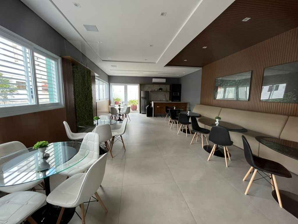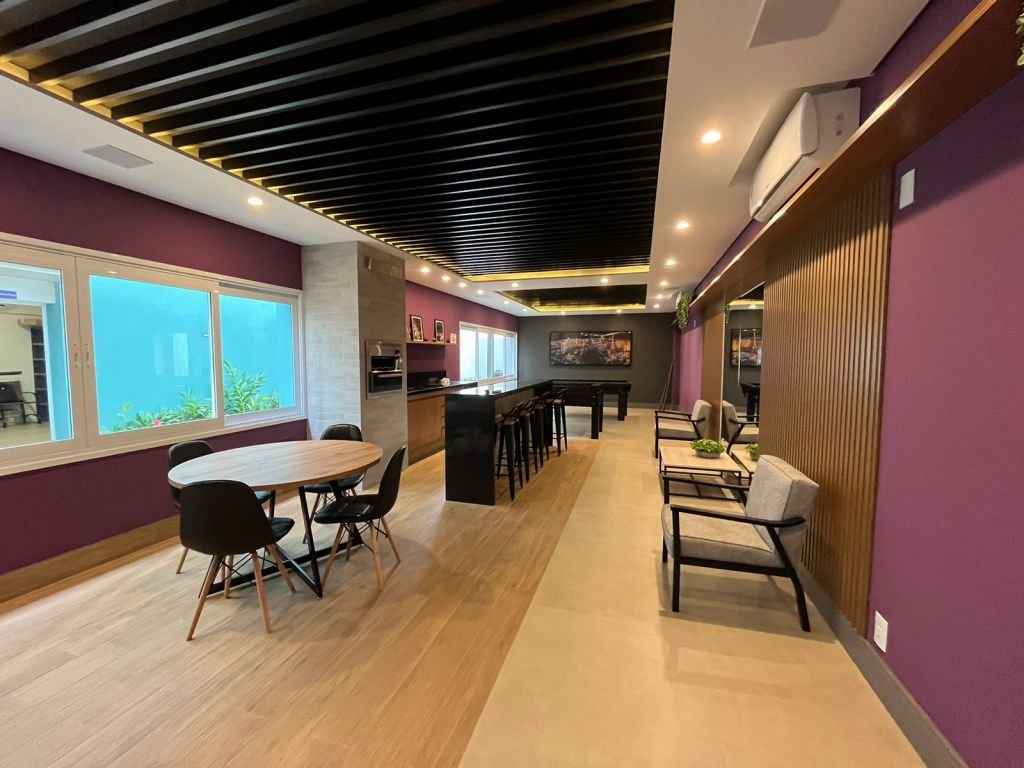 Lindo apartamento, completo em armários e ar condicionado, com 2 dormitórios sendo 1 suÃte com a/e, sala 2 ambientes, cozinha planejada, w.c. social, lavanderia e garagem. CondomÃnio com área de lazer completa, academia, lavanderia e mini mercado.