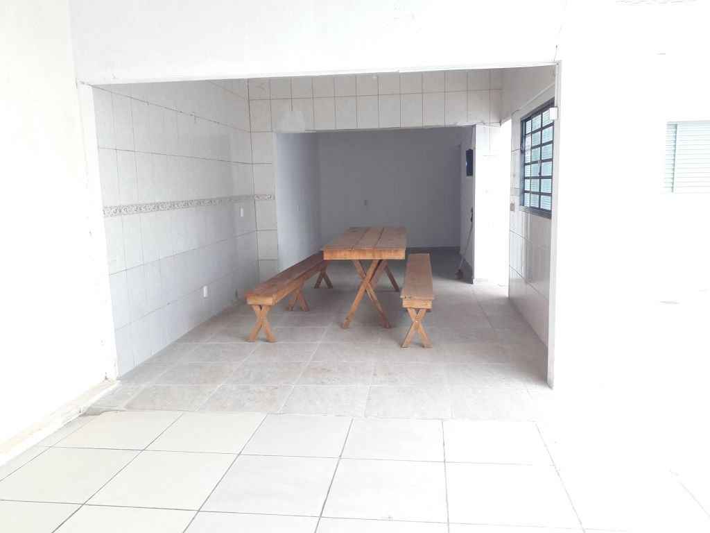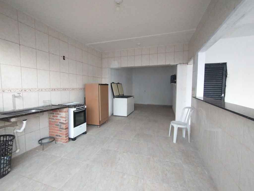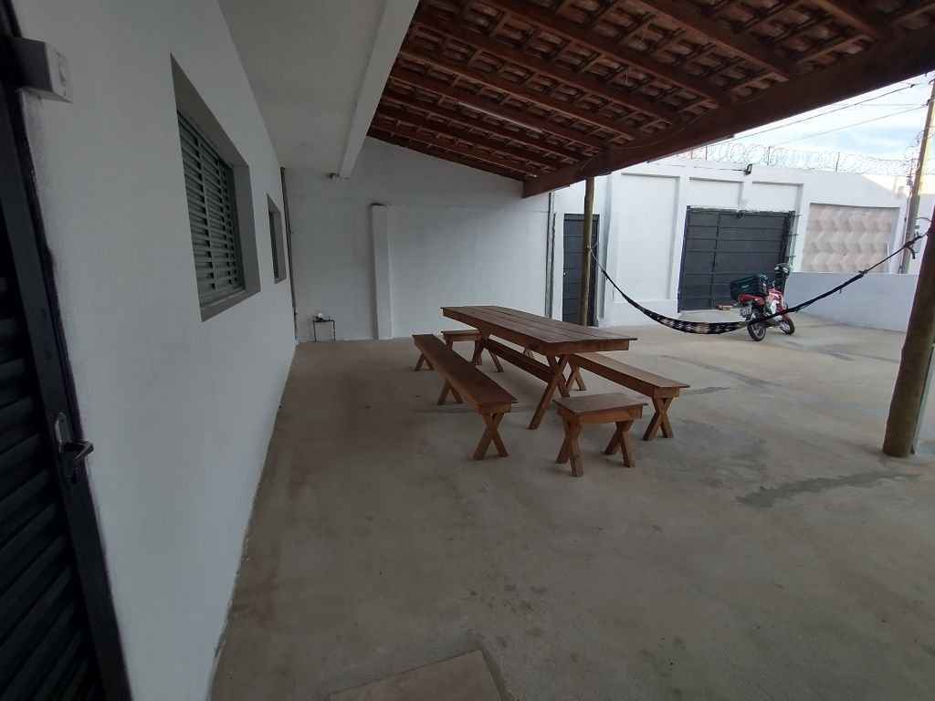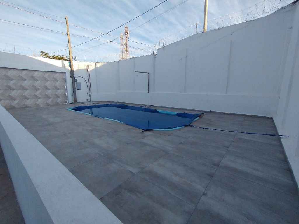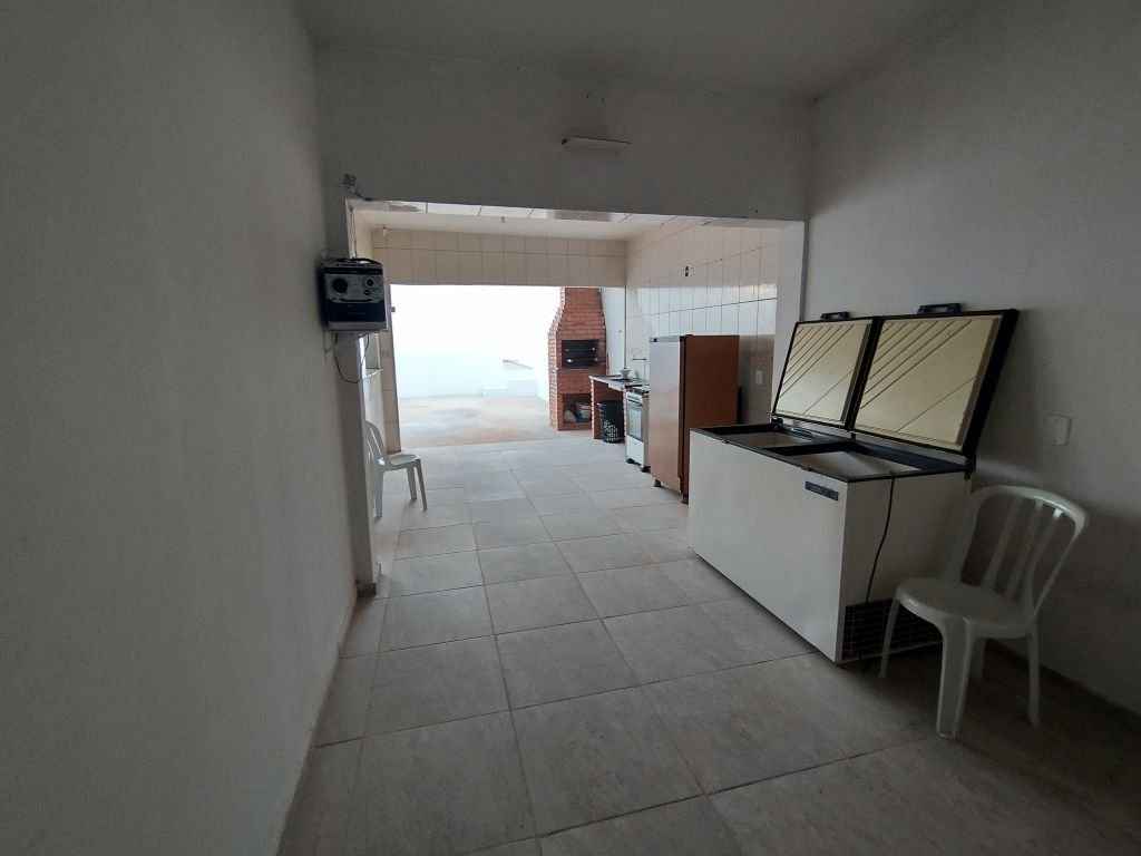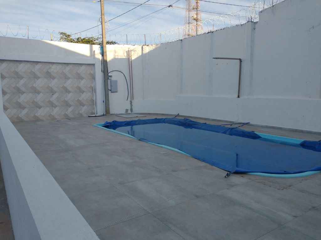 Imóvel com área de lazer completa com piscina, cascata, churrasqueira, espaço aberto amplo, 2 dormitórios, sala, cozinha e 2 banheiros.