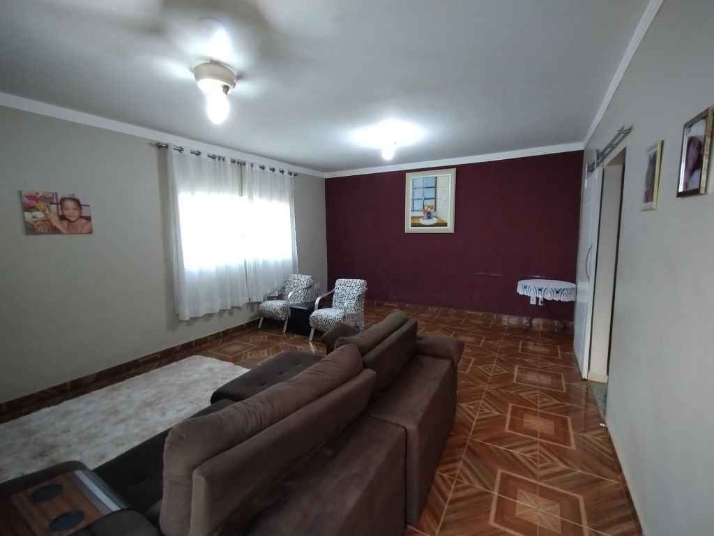 Residência com 3 dormitórios, sala ampla para 2 ambientes, sala de jantar, cozinha, w.c. social, lavanderia, quarto de despejo, w.c. de serviço, churrasqueira, quintal e garagem com portão eletrônico.