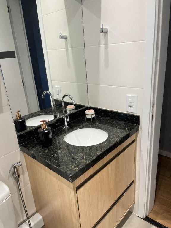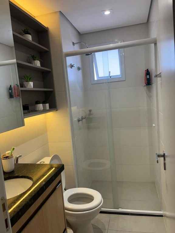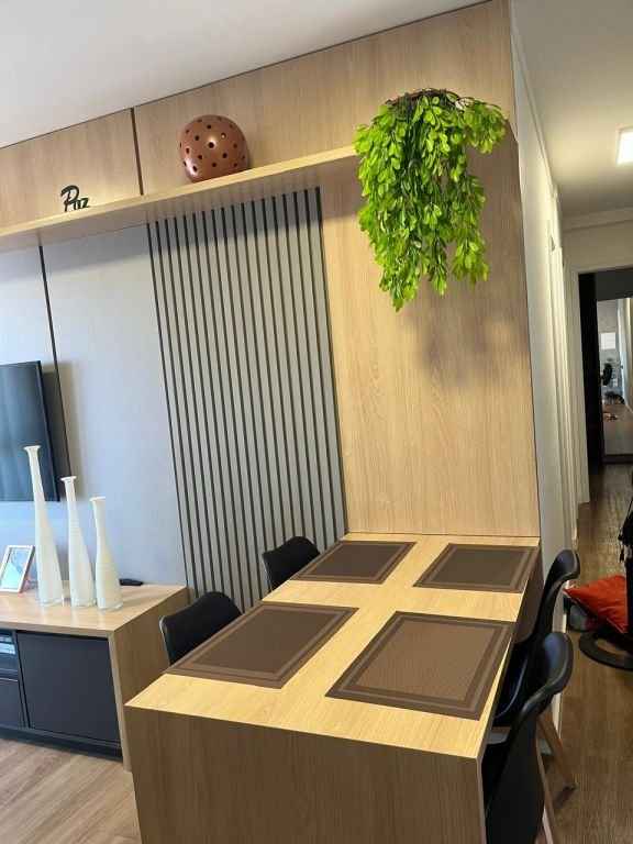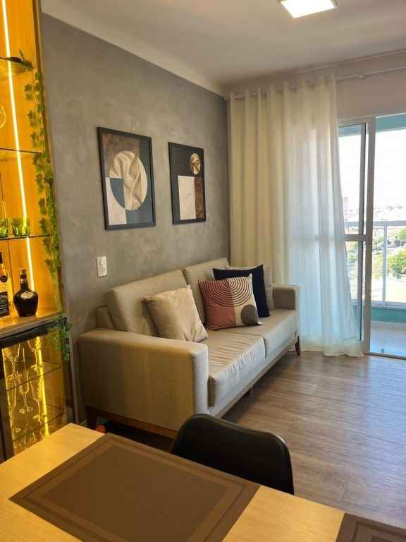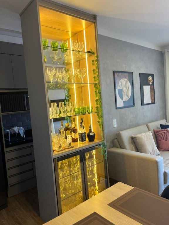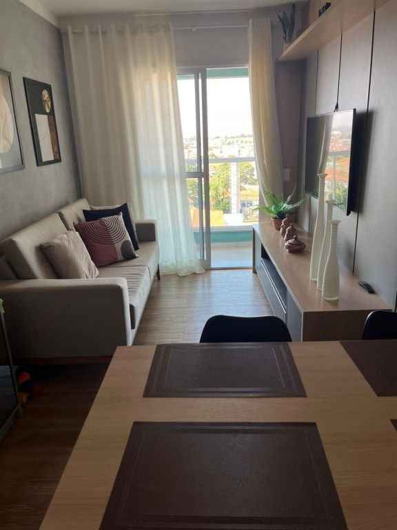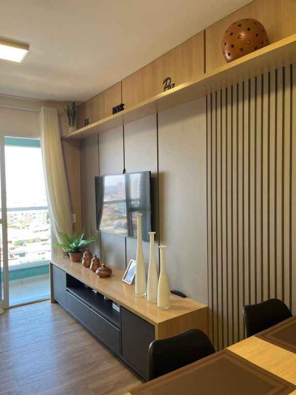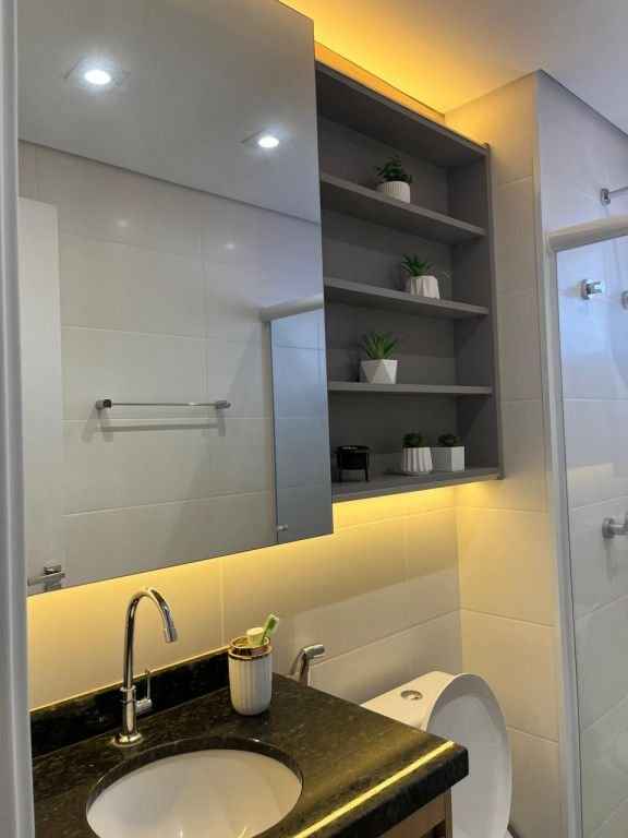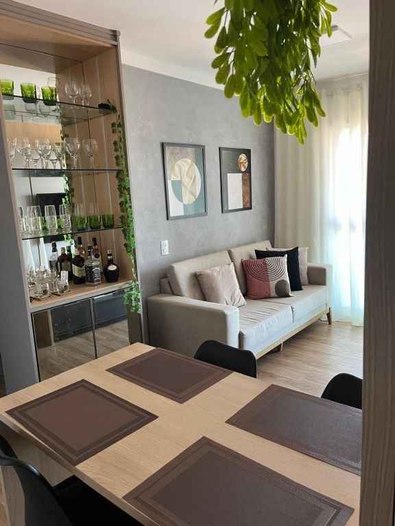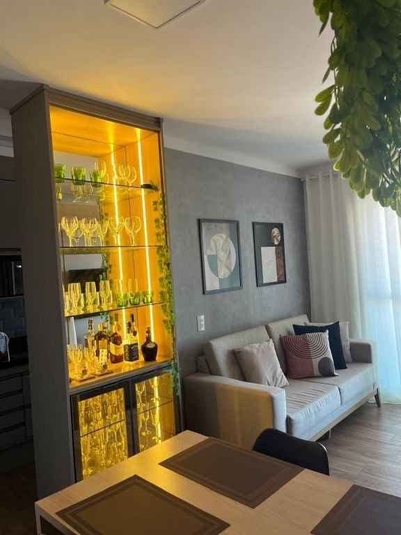 Lindo apartamento completo, diferenciado, todo mobiliado e com ar condicionado, com 2 dormitórios sendo 1 suÃte com a/e, sala 2 ambientes, cozinha planejada, w.c. social com a/e, lavanderia e garagem. Ãrea do condomÃnio com piscina, churrasqueira, espaço gourmet, espaço Kids, área Fitness, quadra poliesportiva, salão de festa, salão de jogos, bicicletário.